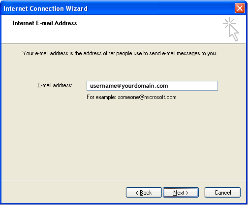 In the 'E-mail address:' field, enter your full email address. Click 'Next'.