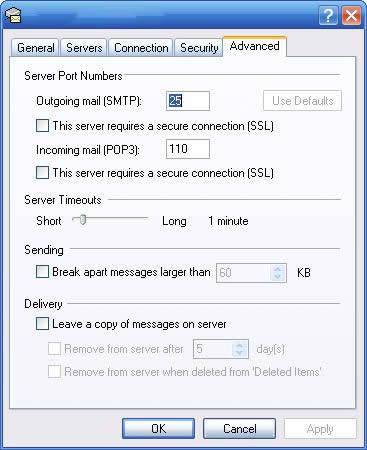 - Under 'Outgoing mail (SMTP)', make sure 'This server requires a secure connection (SSL)'. is UNCHECKED